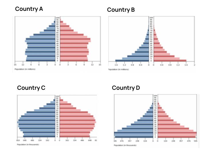 | Stages of DTM | Which population pyramid represents this stage? |