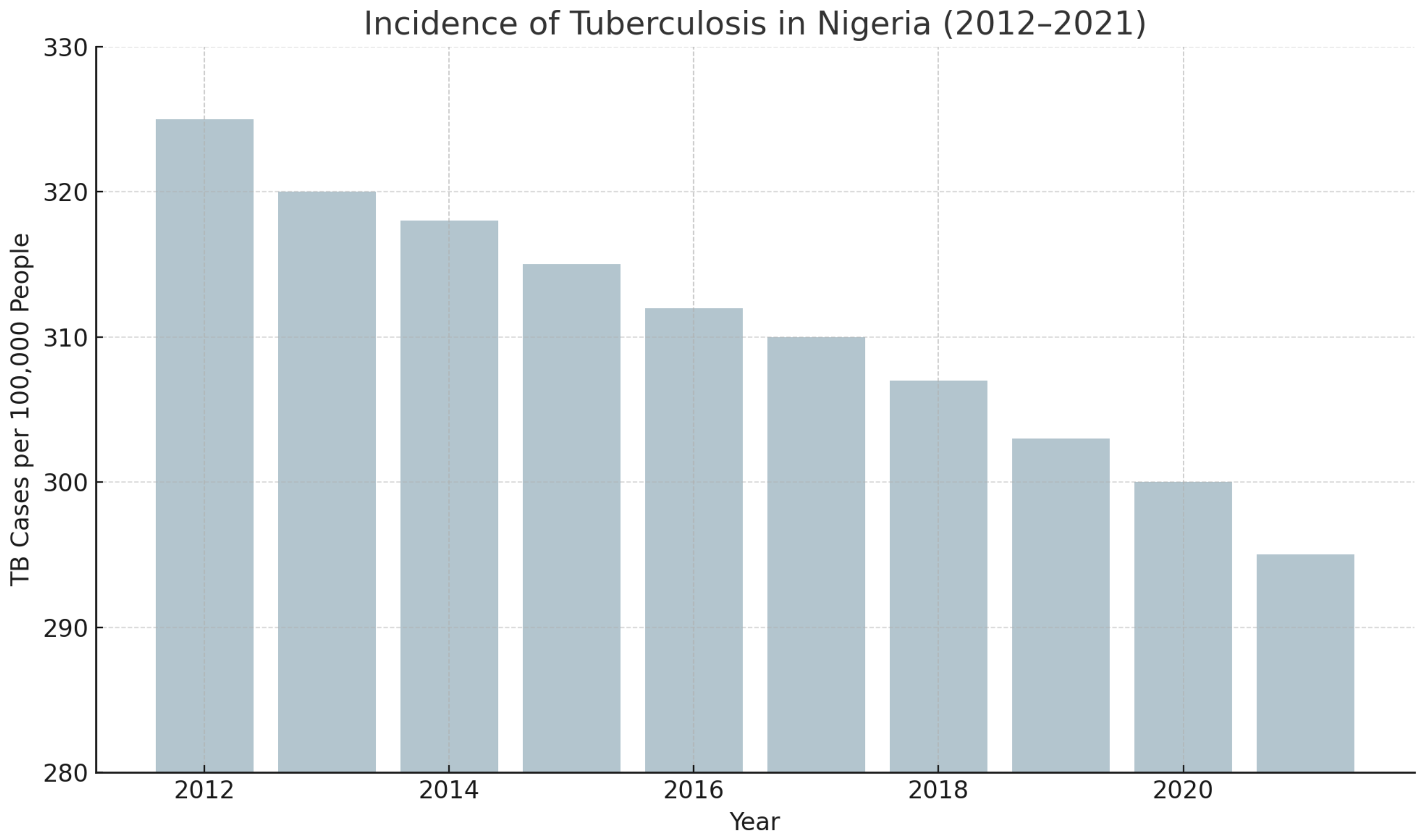 The following graph shows the incidence of tuberculosis in Nigeria from 2012-2021