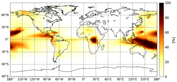 The map below shows the impact of SO2 volcanic passive emissions on the tropospheric sulfur budget.
