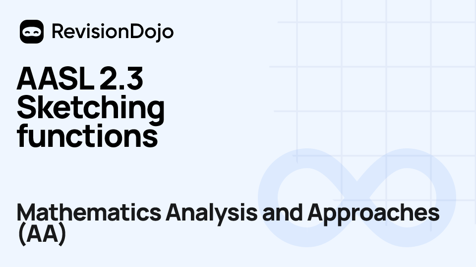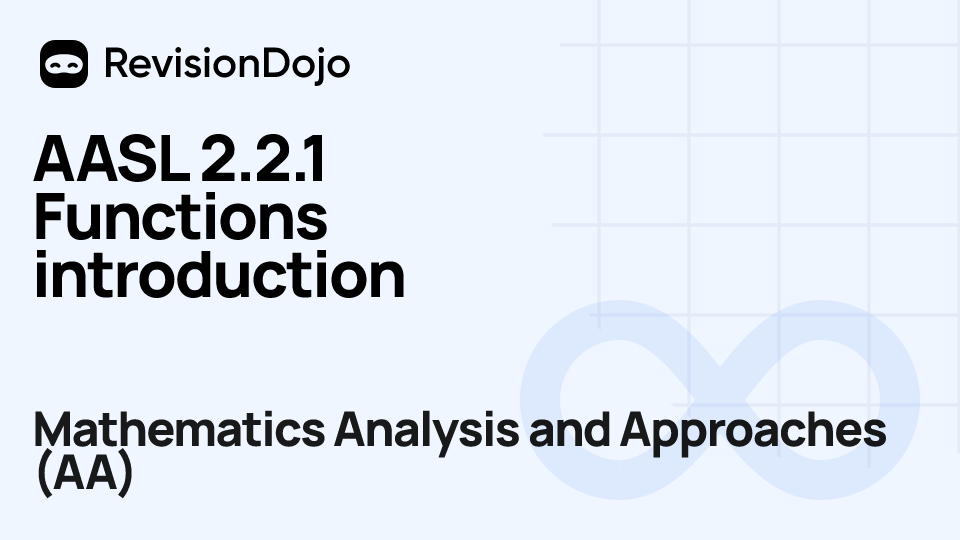 These comprehensive video lessons help IB Mathematics Analysis and Approaches (AA) students Standard Level (SL) and Higher Level (HL) understand and master the essential concepts needed for success in IB Exams. Each video focuses on Functions and is aligned with the IB Mathematics Analysis and Approaches (AA) syllabus, ensuring focused learning on functions and equations, calculus, complex numbers, sequences and series, and probability and statistics. Students can watch and rewatch anytime, anywhere, perfect for visual learners, reinforcing complex concepts, and understanding IB methodology. By using RevisionDojo's video lessons consistently, learners build deep understanding and enter the exam with confidence.