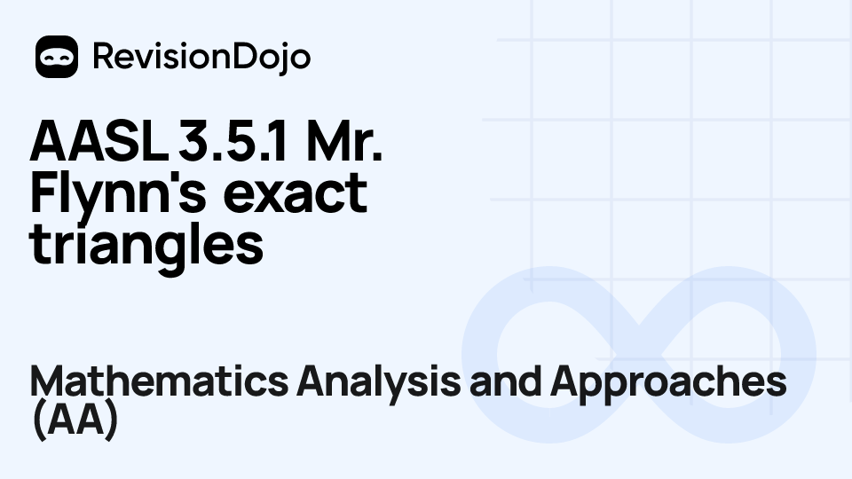 These comprehensive video lessons help IB Mathematics Analysis and Approaches (AA) students Standard Level (SL) and Higher Level (HL) understand and master the essential concepts needed for success in IB Exams. Each video focuses on Geometry & Trigonometry and is aligned with the IB Mathematics Analysis and Approaches (AA) syllabus, ensuring focused learning on functions and equations, calculus, complex numbers, sequences and series, and probability and statistics. Students can watch and rewatch anytime, anywhere, perfect for visual learners, reinforcing complex concepts, and understanding IB methodology. By using RevisionDojo's video lessons consistently, learners build deep understanding and enter the exam with confidence.