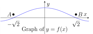 The function intersects the x-axis at points and , where and with . The normal to the graph at and the tangent to the graph at intersect at point .