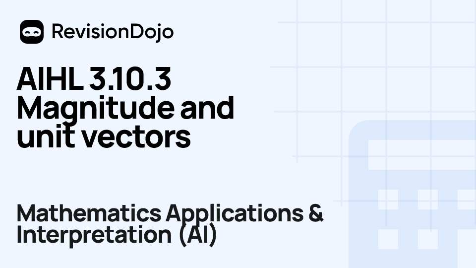 These comprehensive video lessons help IB Mathematics Applications & Interpretation (AI) students Standard Level (SL) and Higher Level (HL) understand and master the essential concepts needed for success in IB Exams. Each video focuses on AHL 3.10—Vector definitions and is aligned with the IB Mathematics Applications & Interpretation (AI) syllabus, ensuring focused learning on core principles, advanced applications, and practical problem-solving. Students can watch and rewatch anytime, anywhere, perfect for visual learners, reinforcing complex concepts, and understanding IB methodology. By using RevisionDojo's video lessons consistently, learners build deep understanding and enter the exam with confidence.