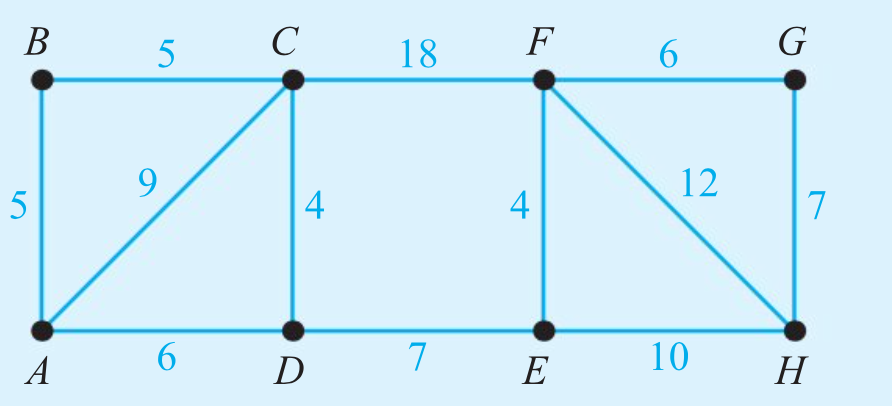 Use Kruskal's algorithm to find the minimum spanning tree (MST) for the network, listing the edges in the order they are selected.