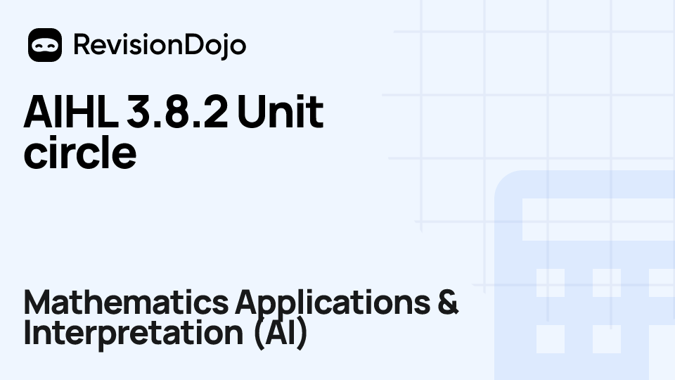 These comprehensive video lessons help IB Mathematics Applications & Interpretation (AI) students Standard Level (SL) and Higher Level (HL) understand and master the essential concepts needed for success in IB Exams. Each video focuses on AHL 3.8—Unit circle, Pythag identity, solving trig equations graphically and is aligned with the IB Mathematics Applications & Interpretation (AI) syllabus, ensuring focused learning on core principles, advanced applications, and practical problem-solving. Students can watch and rewatch anytime, anywhere, perfect for visual learners, reinforcing complex concepts, and understanding IB methodology. By using RevisionDojo's video lessons consistently, learners build deep understanding and enter the exam with confidence.