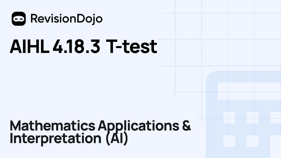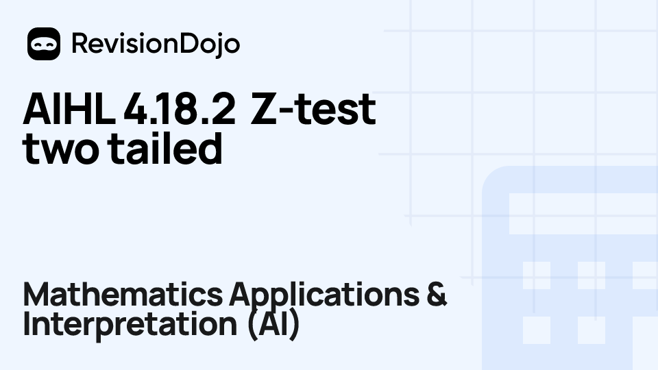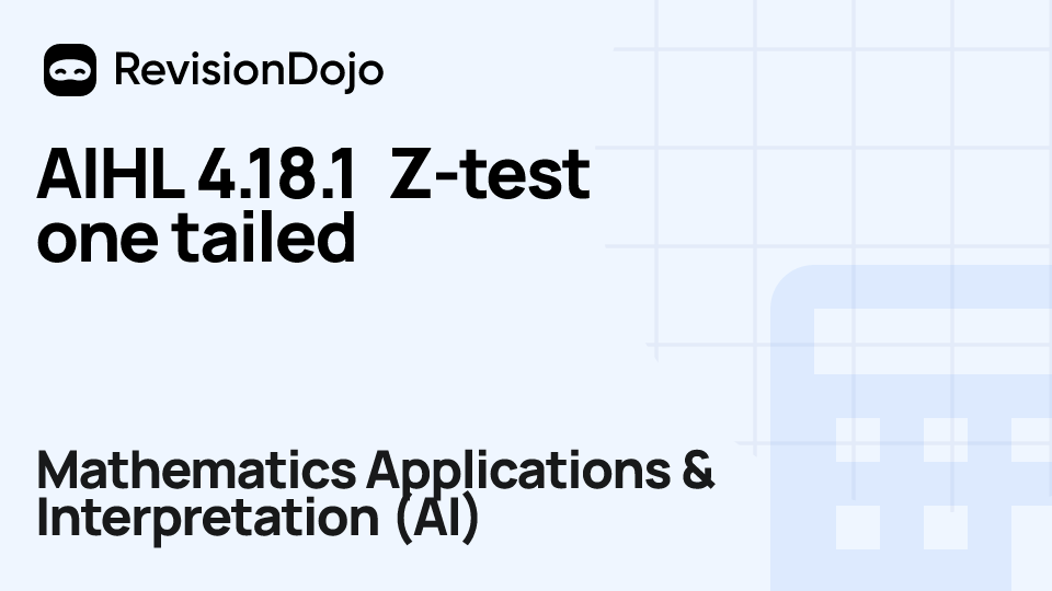 These comprehensive video lessons help IB Mathematics Applications & Interpretation (AI) students Standard Level (SL) and Higher Level (HL) understand and master the essential concepts needed for success in IB Exams. Each video focuses on AHL 4.18—T and Z test, type I and II errors and is aligned with the IB Mathematics Applications & Interpretation (AI) syllabus, ensuring focused learning on core principles, advanced applications, and practical problem-solving. Students can watch and rewatch anytime, anywhere, perfect for visual learners, reinforcing complex concepts, and understanding IB methodology. By using RevisionDojo's video lessons consistently, learners build deep understanding and enter the exam with confidence.