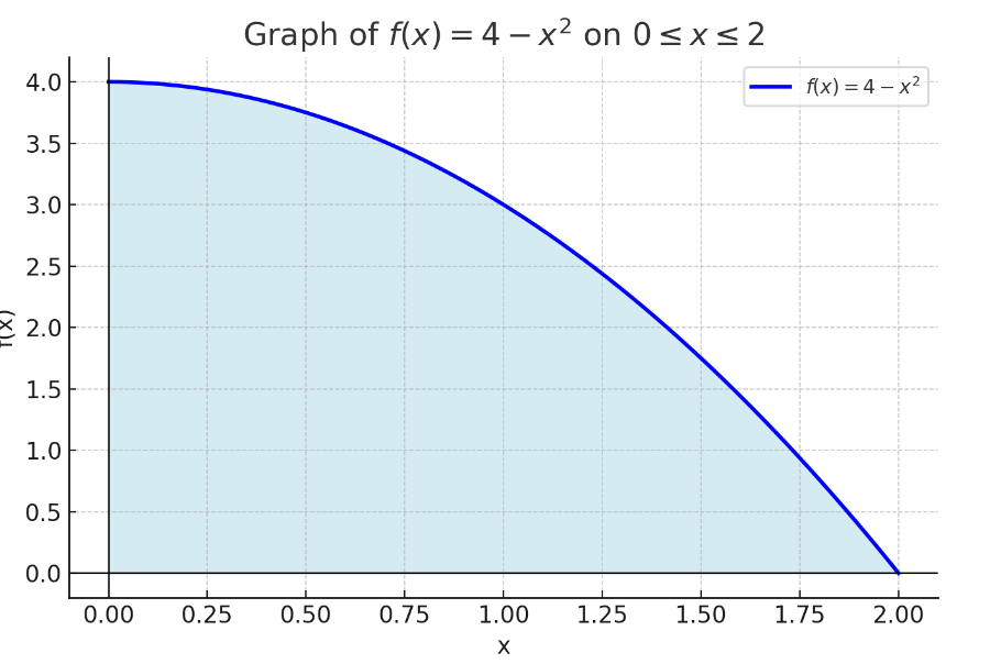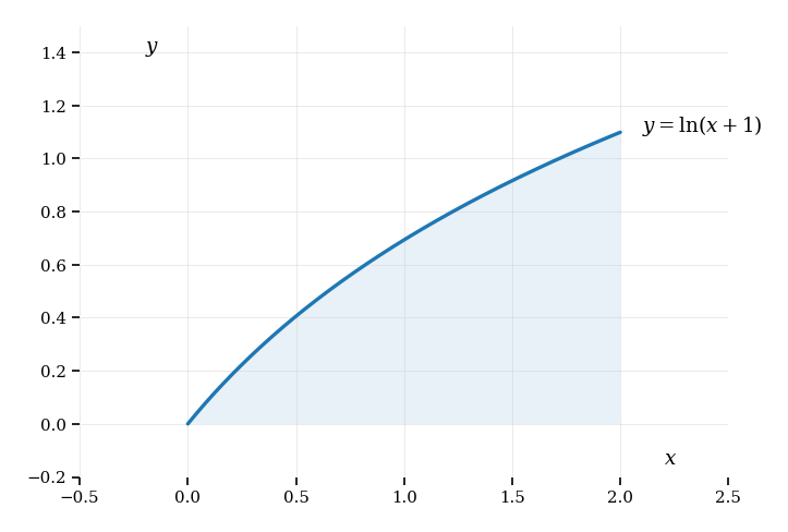 The function is defined for . The shaded region is enclosed by the curve and the coordinate axes, as shown in the diagram.
