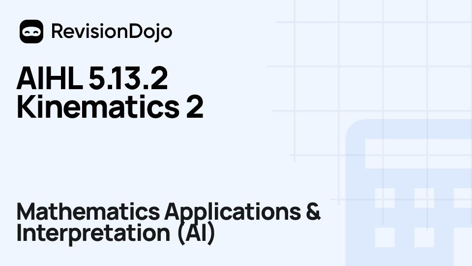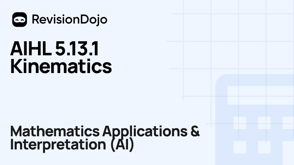 These comprehensive video lessons help IB Mathematics Applications & Interpretation (AI) students Standard Level (SL) and Higher Level (HL) understand and master the essential concepts needed for success in IB Exams. Each video focuses on AHL 5.13—Kinematic problems and is aligned with the IB Mathematics Applications & Interpretation (AI) syllabus, ensuring focused learning on core principles, advanced applications, and practical problem-solving. Students can watch and rewatch anytime, anywhere, perfect for visual learners, reinforcing complex concepts, and understanding IB methodology. By using RevisionDojo's video lessons consistently, learners build deep understanding and enter the exam with confidence.
