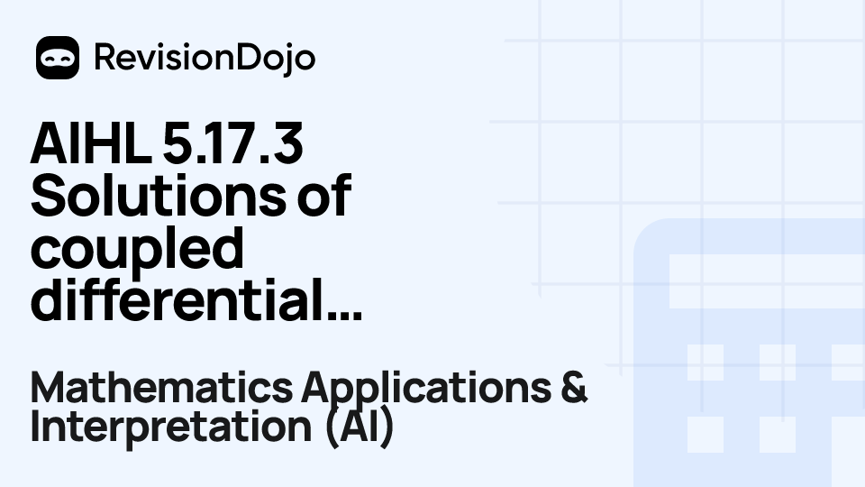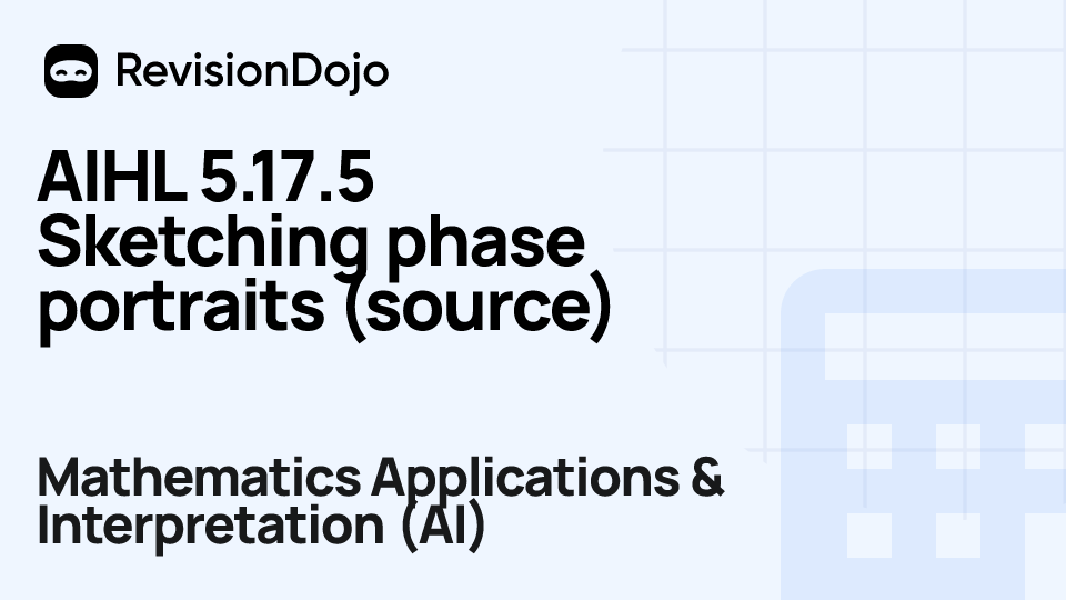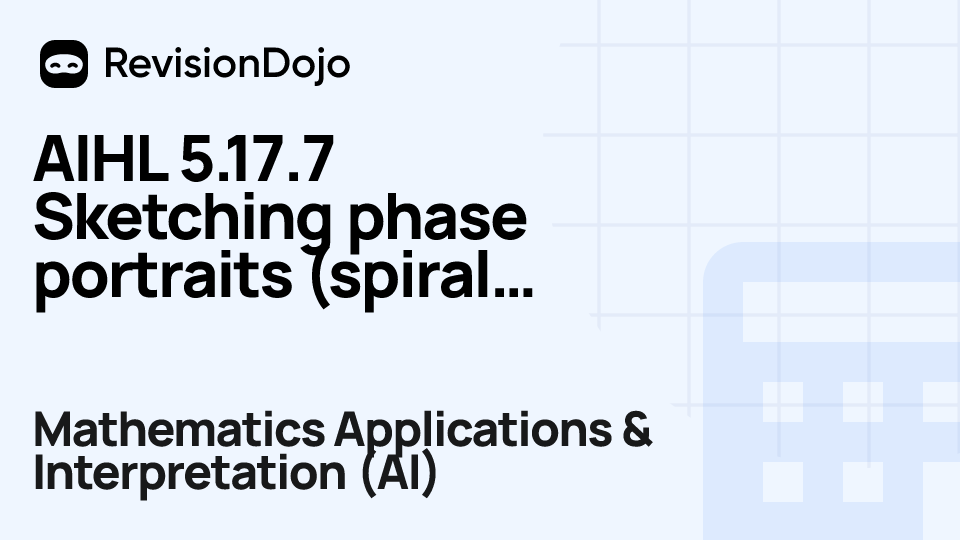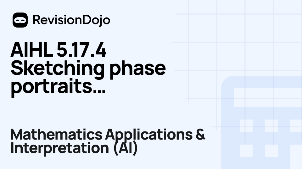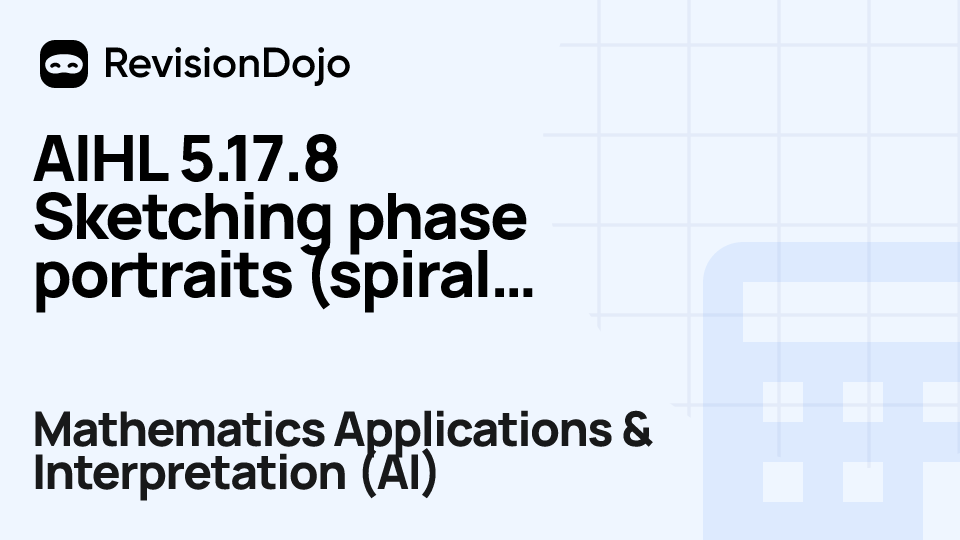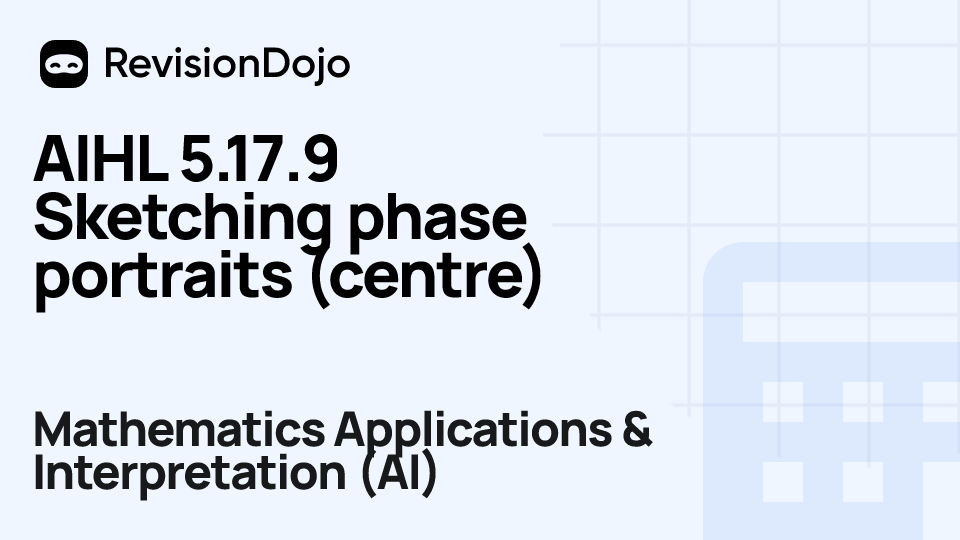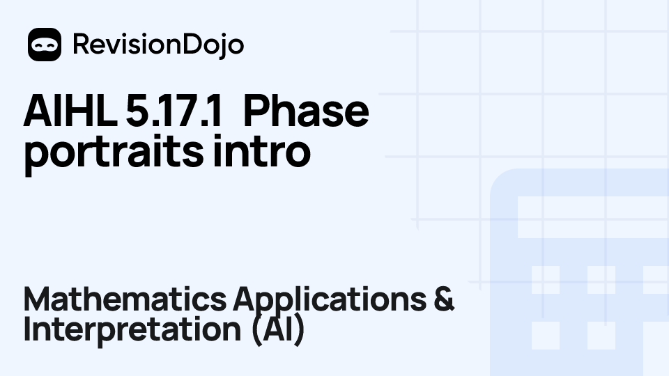 These comprehensive video lessons help IB Mathematics Applications & Interpretation (AI) students Standard Level (SL) and Higher Level (HL) understand and master the essential concepts needed for success in IB Exams. Each video focuses on AHL 5.17—Phase portrait and is aligned with the IB Mathematics Applications & Interpretation (AI) syllabus, ensuring focused learning on core principles, advanced applications, and practical problem-solving. Students can watch and rewatch anytime, anywhere, perfect for visual learners, reinforcing complex concepts, and understanding IB methodology. By using RevisionDojo's video lessons consistently, learners build deep understanding and enter the exam with confidence.
