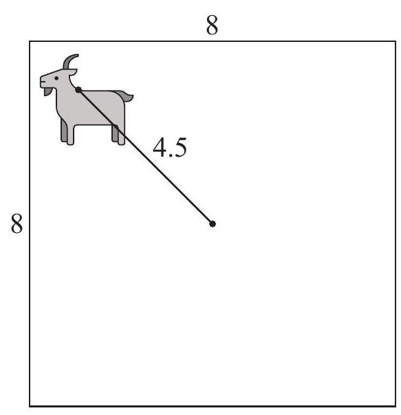 A square field with side has a goat tied to a post in the centre by a rope such that the goat can reach all parts of the field up to from the post.