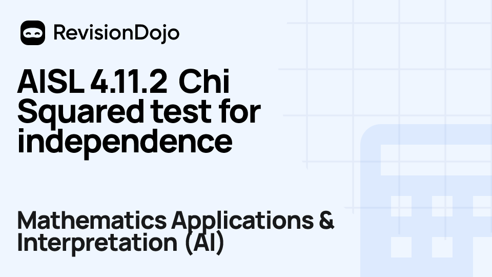 These comprehensive video lessons help IB Mathematics Applications & Interpretation (AI) students Standard Level (SL) and Higher Level (HL) understand and master the essential concepts needed for success in IB Exams. Each video focuses on Statistics and Probability and is aligned with the IB Mathematics Applications & Interpretation (AI) syllabus, ensuring focused learning on core principles, advanced applications, and practical problem-solving. Students can watch and rewatch anytime, anywhere, perfect for visual learners, reinforcing complex concepts, and understanding IB methodology. By using RevisionDojo's video lessons consistently, learners build deep understanding and enter the exam with confidence.