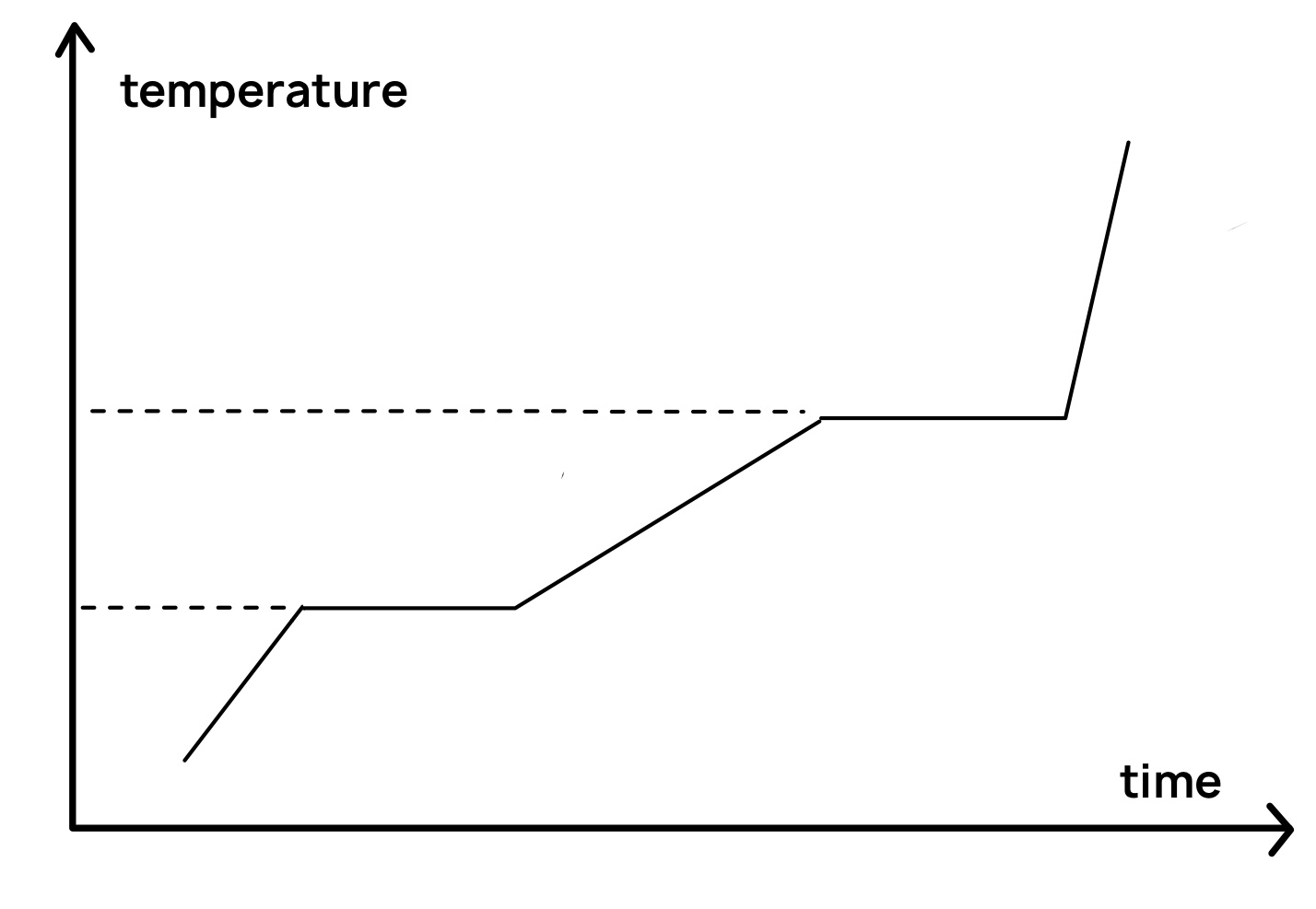 The specific heat capacities of the solid, liquid and gaseous forms of the material are , and respectively. What can be deduced about the values of , and ?