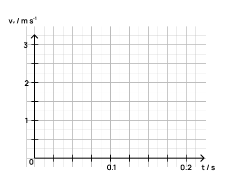 Sketch, on the axes provided below, a graph showing the variation with time of the vertical component of velocity of the ball until it reaches the table surface. Take to be .